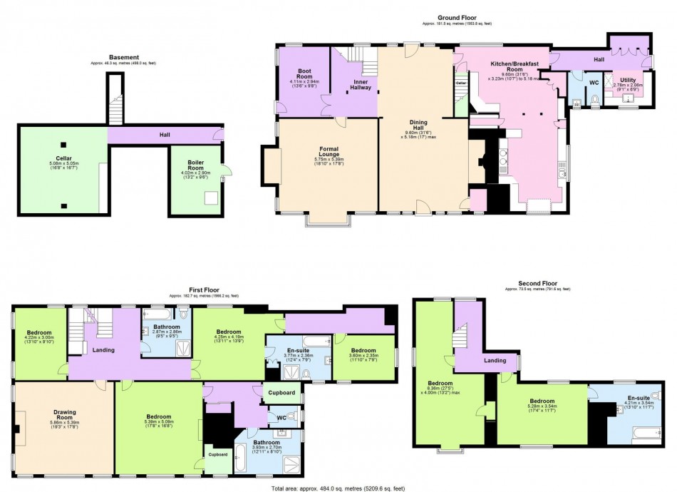Bedroom two offers its own private en-suite and access to a seventh bedroom - perfect for a dressing room, nursery, guest bedroom. The third bedroom, currently a refined drawing room with Jacobean carvings, a fireplace with a log burner, panelled walls, and stunning dual-aspect views. The other bedrooms are equally inviting, with characterful beams, far-reaching views, and beautifully designed bathrooms, including a main bathroom with a walk-in shower and freestanding bath. The second floor houses two more spacious double bedrooms and a shared bathroom, ensuring plenty of room for family and guests.